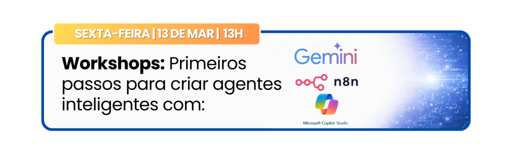 Entender é bom, sair com algo aplicável é melhor. No encerramento desta semana incrível, vamos realizar os workshops e demos em sessões paralelas para apoiar usuários de negócio a criar seus próprios agentes com ferramentas como Microsoft Copilot StudioGoogle Gemini n8n, explorando inúmeras possibilidades. É a chance de transformar inspiração em ação e sair com ideias prontas para testar no seu contexto. Se você quer terminar a semana com clareza do “como fazer”, esse é o encontro que fecha com chave de ouro.